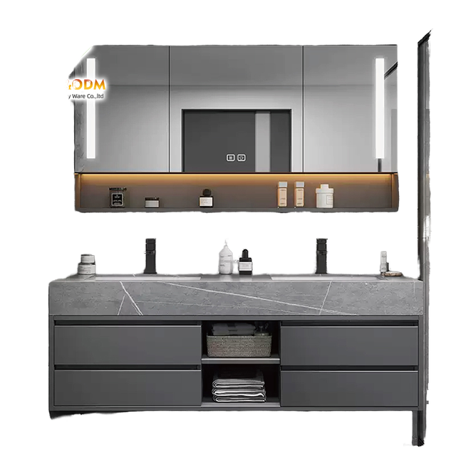 Mobile da bagno moderno di lusso mobile da bagno con ripiano in pietra sinterizzata e doppi lavelli