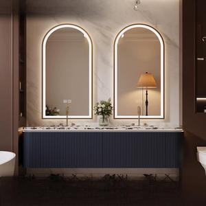 Ensemble de vanité luxueuse de salle de bains minimaliste en bois massif de style australien miroir intelligent panneau ondulé finition laquée murale