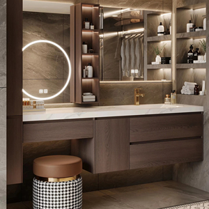 Armoires de salle de bain modernes en bois massif de style Ins Bassin en céramique Grande capacité de stockage Miroir intelligent mural pour hôtel villa