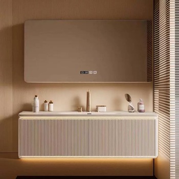 Luxury Wood Bathroom Vanity Big Sink with Smart LED Mirror and Fluted Front Solid Wood Bathroom Cabinet
