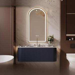 Australian-style minimalista madeira maciça luxuoso banheiro Vanity Set Espelho inteligente painel ondulado parede lacado acabamento