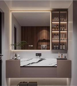 Hiện đại sang trọng rắn gỗ phòng tắm tủ với thông minh LED gương và bất đá cẩm thạch truy cập hàng đầu lớn không gian lưu trữ