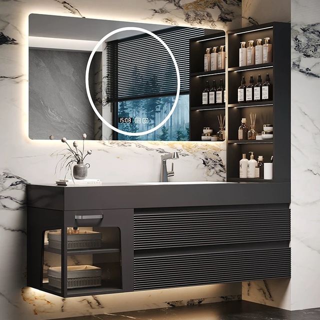 Tối giản rắn gỗ Rock Board kết hợp tủ phòng tắm với Gương thông minh gốm lưu vực hiện đại thông minh nội thất phòng tắm